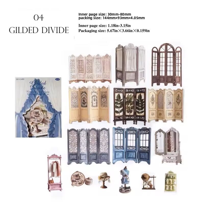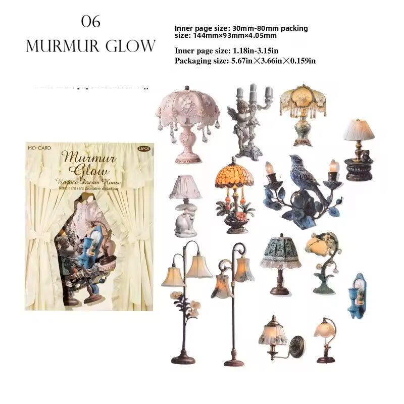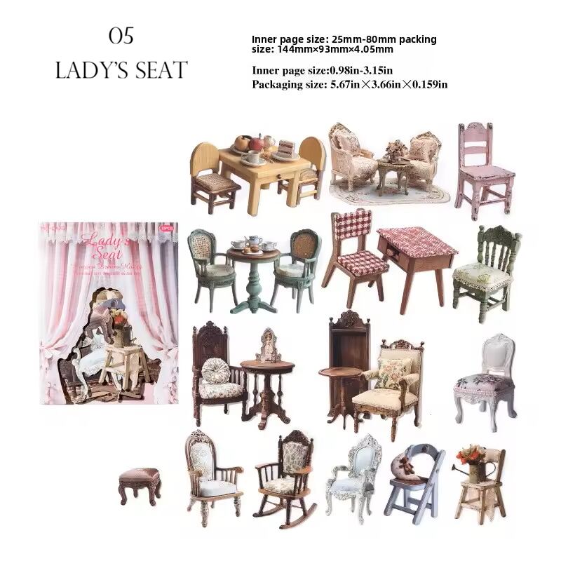 アンティークな家具や可愛いテディベア、豪華なカーテンなど、ドールハウスの世界を凝縮した厚手素材のシールセット。
